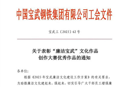中钢洛耐多项作品在“廉洁宝武”文化作品创作大赛中获奖