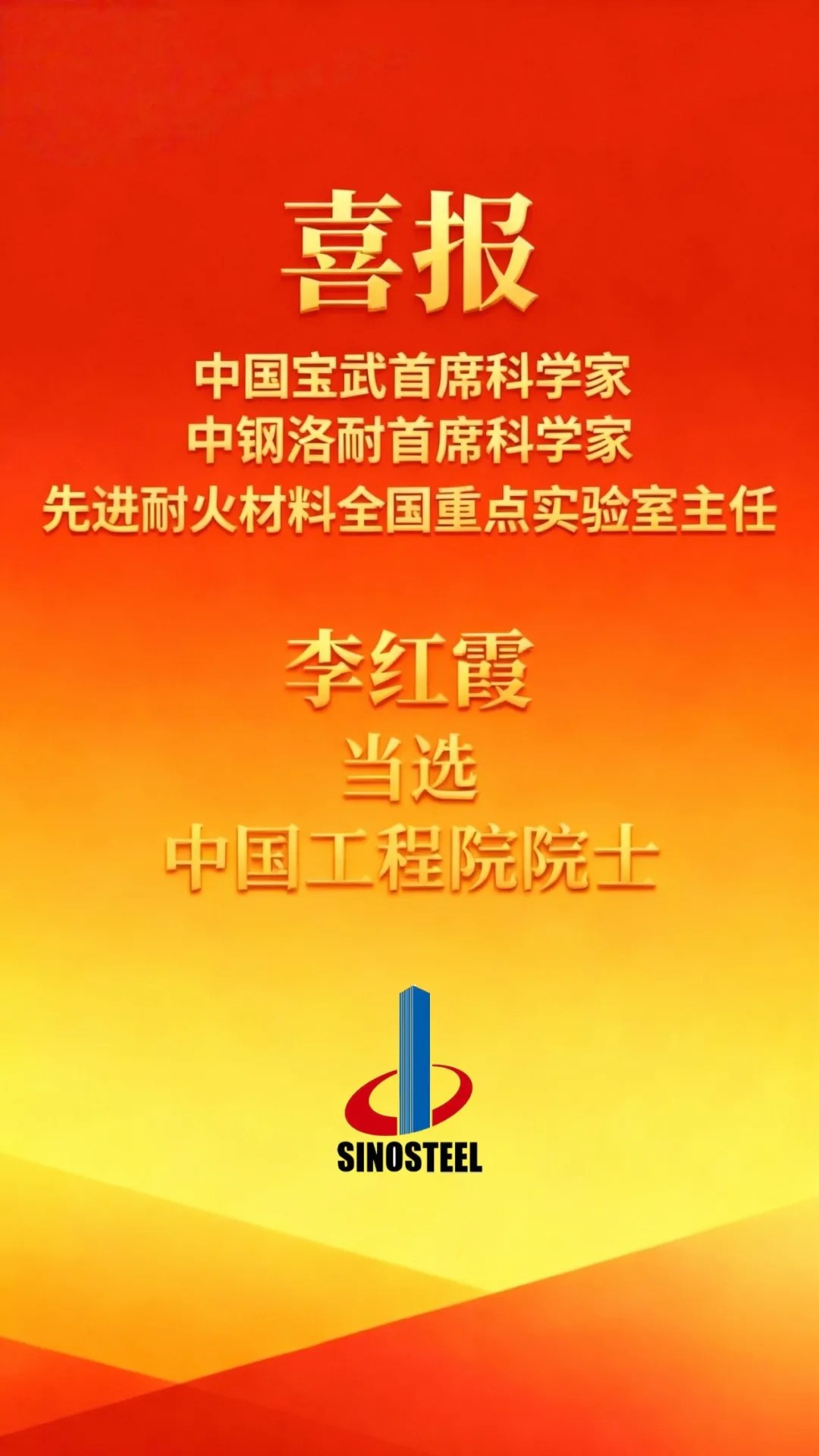 重磅喜讯!中国宝武首席科学家、中钢洛耐首席科学家、先进耐火材料全国重点实验室主任李红霞,当选中国工程院院士!