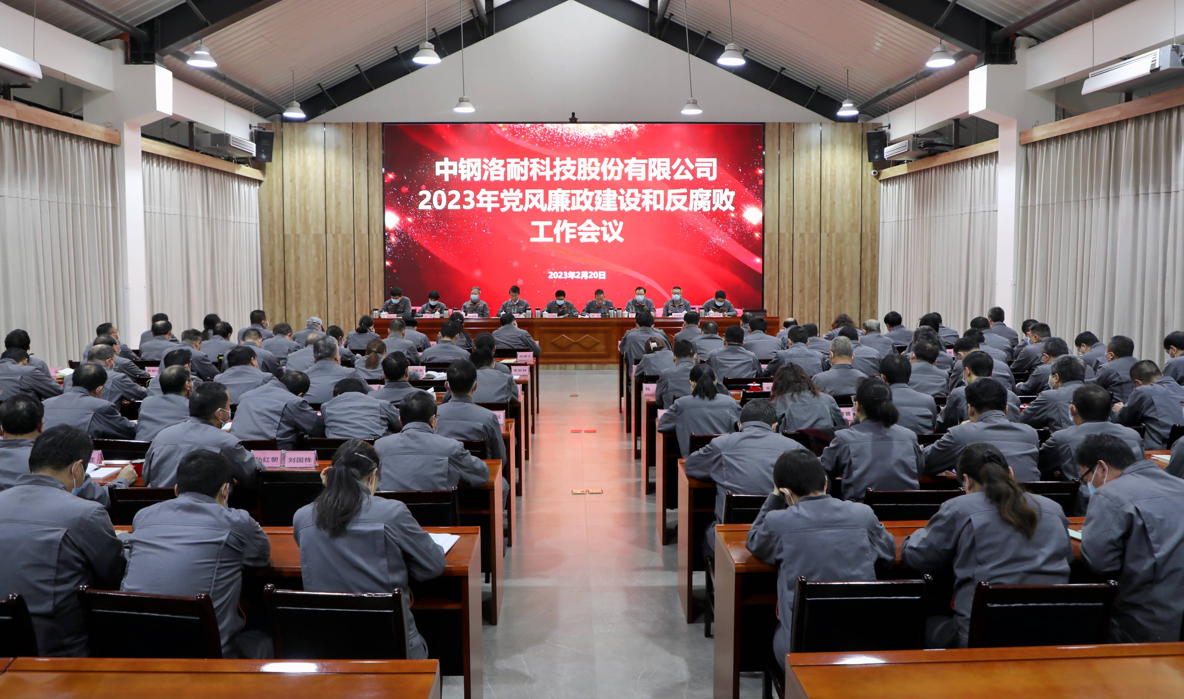 2月20日下午,中钢洛耐公司党委在红色教育基地多功能会议室召开2023年党风廉政建设和反腐败工作会议,传达学习中国宝武、中钢集团党风廉政建设和反腐败工作会议精神,总结回顾公司2022年党风廉政建设和反腐败工作,安排部署2023年工作任务。公司党委书记、董事长李国富发表讲话,公司党委委员、纪委书记杜波作2023年公司党风廉政建设和反腐败工作报告,会议由公司党委副书记、常务副总经理王战民主持。