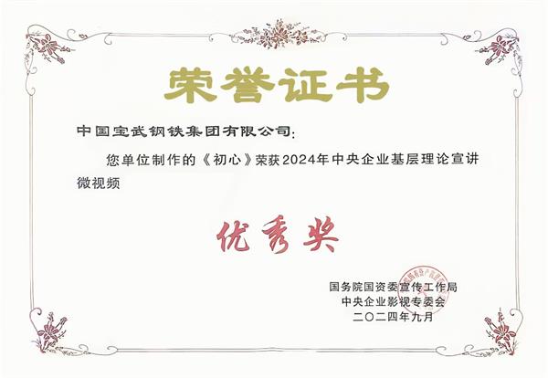 9月27日,2024年中央企业社会主义核心价值观主题微电影(微视频)展映发布仪式在北京举行,由中国宝武选送、中钢集团指导、中钢洛耐拍摄的微视频《初心》荣获2024年中央企业基层理论宣讲微视频优秀奖,这是该视频继荣获“宝武好故事”后的又一殊荣,目前该视频已经入围第七届中央企业优秀故事创作展示活动。