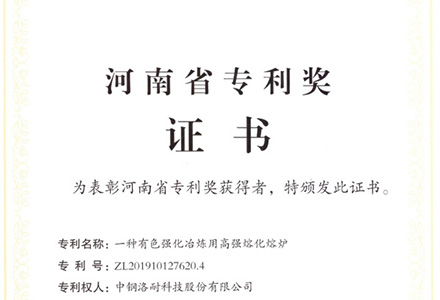 近日,河南省政府发布 “关于表彰第四届河南省专利奖”的通知,中钢洛耐发明专利“一种有色强化冶炼用高强熔化熔炉”喜获一等奖。这是中钢洛耐首次荣获河南省专利奖,实现了省专利奖的重大突破。